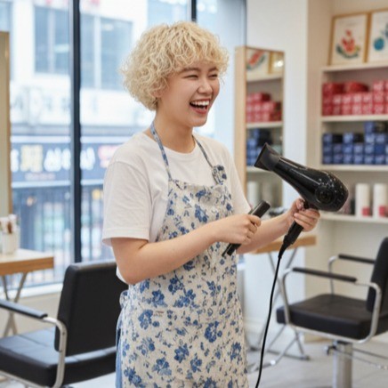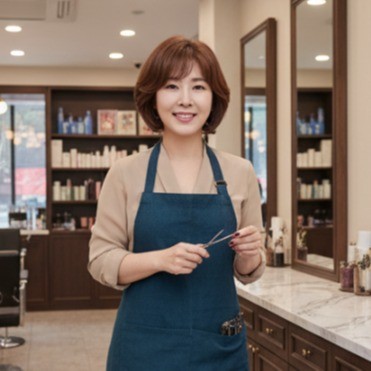 지민은 고객의 얼굴형과 분위기를 정확하게 파악하여 최적의 컷과 펌 스타일을 제안합니다.